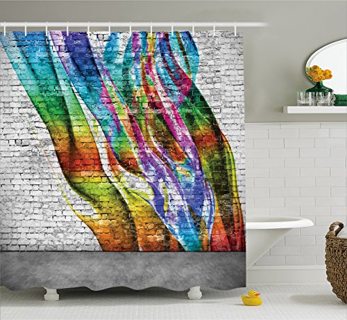 Rustic Home Decor Shower Curtain by Ambesonne, Abstract Graffiti Painted on Wall Harmony of Colors Street Art Fresco Print, Fabric Bathroom Decor Set with Hooks, 70 Inches, Multi