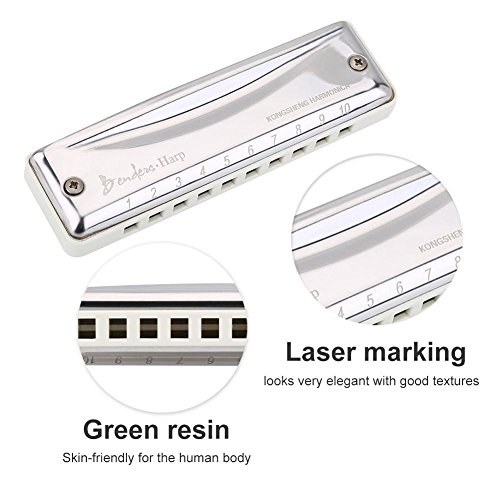Description: This item is a harmonica, has 10 holes and key of C. With its high accuracy and accurate pronunciation, perfect for any harmonica lover or professional musician. Features: The cover is made of high quality stainless steel material, smooth to touch, anti-rust and durable to use. The comb of this harmonica is made of eco-friendly resin, non toxic and skin-friendly for the human body. The reed adopts high quality phosphor bronze which is easier to pronounce, and make the timbre has more beautiful tone. Laser marking, has exquisite craftsmanship, looks very elegant with good textures. High accuracy and accurate pronunciation, perfect for any harmonica lover or professional musician. Specification: Condition: 100% Brand New Material: Stainless Steel(Cover) Resin(Comb) Phosphor Bronze(Reed) Tone: C Key Color: White, Black?(Optional) Size: Approx. 103 x 30 x 20mm / 4.06 x 1.18 x 0.79inch Weight: Approx. 133g Package Included: 1 x Harmonica 1 x Case Note: Please allow slight deviation for the color and measurement. Thanks for your understanding. 0 |