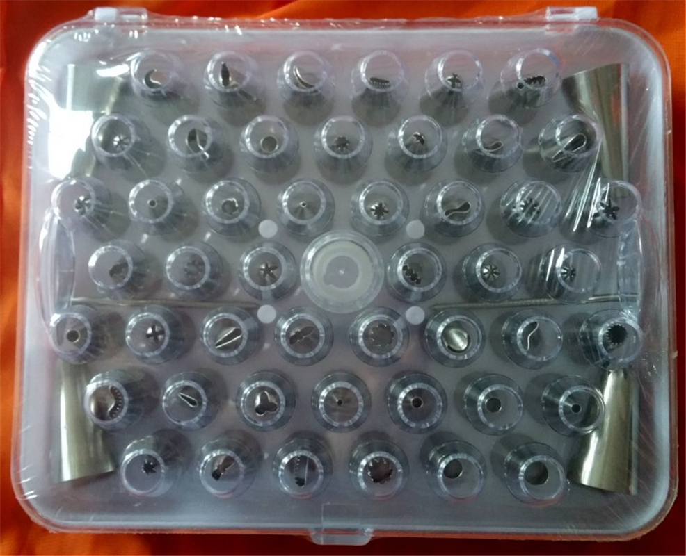 52 differently ended icing nozzles.With Clear plastic storage box.