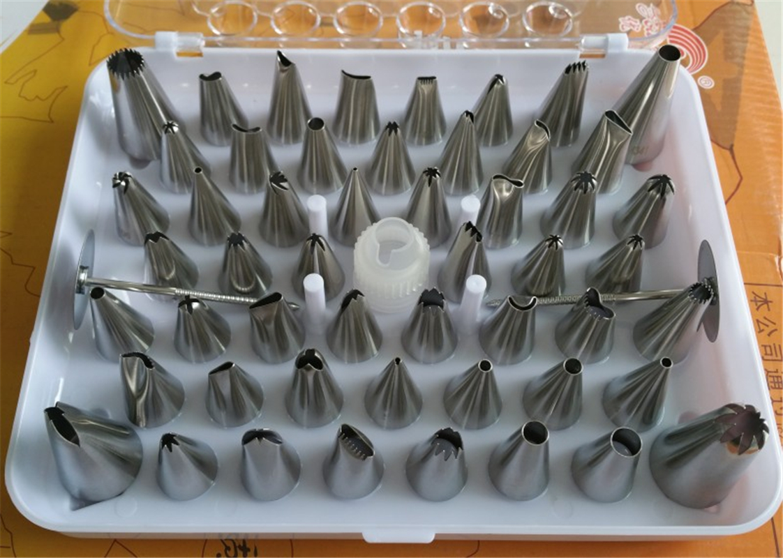 Beautiful cakes and cookies with this set of 52 icing nozzles.