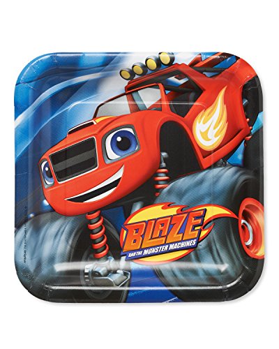 -. Binding : Toy -. Brand : Amscan -. Color : Blue/Red -. Department : party-supplies -. EAN : 0013051606602 -. Feature : Features Axle City's number one racer with the Blaze and the Monster Machines flame logo. / Use them to set the table at your Blaze birthday party / Made of paper. / Package includes 8pcs. Lunch plates, each measuring 9" -. IsAdultProduct : 0 -. Label : American Greetings- Toys -. Manufacturer : American Greetings- Toys -. Model : 551582 -. MPN : 5553161 -. PackageQuantity : 1 -. PartNumber : 5553161 -. ProductGroup : Toy -. ProductTypeName : TOYS_AND_GAMES -. Publisher : American Greetings- Toys -. Size : 9" -. Studio : American Greetings- Toys -. Title : Daring Blaze and the Monster Machines Square Birthday Party Lunch Paper Plate Disposable Tableware (8 Pack), Blue/Red, 9". -. UPC : 013051606602 -. Warranty : No Warranty