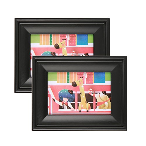 Fastnova 6x7 inch Wide Black Wood Picture Frames Made to Display Pictur 3.5x5 Without Mat, Table Top and Wall Mounting Material Included, Set of Two