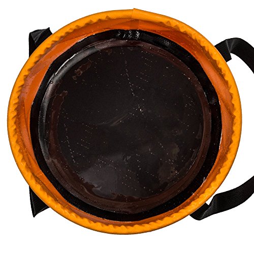 2.Excellent Quality:Use the Lid to Keep Dirt and Bugs Out of Your Water.The body of the camp bucket features an anti-abrasive, soft and water resistant PVC coated tarpaulin of premium standard for long-lasting durability, preventing water or any liquid from seeping.