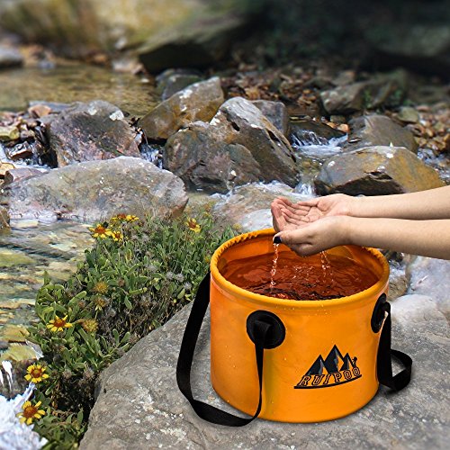 1.Practical & Multipurpose Water Basin : Ruipoo buckets are great for camping, outdoors, road trips, travel, emergency, fishing, picnics - even for washing dishes, hauling water, and washing clothes or cleaning your feet from sand when you are on the beach .