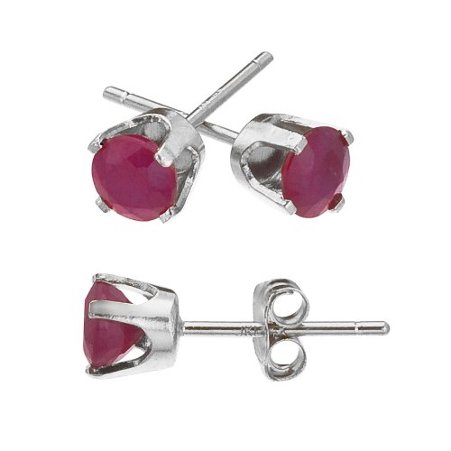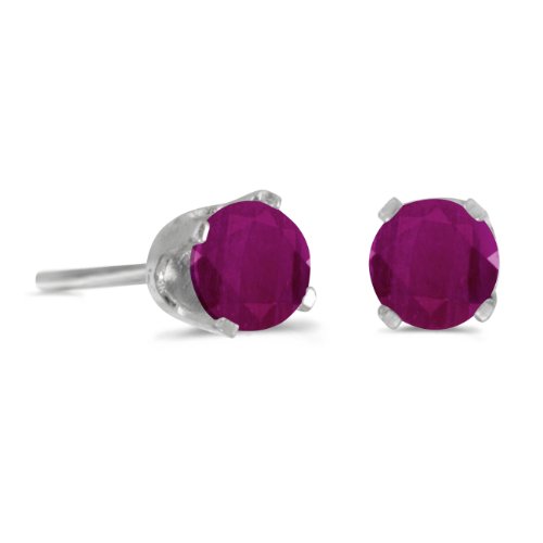 -. Title : 4 mm Round Ruby Stud Earrings in 14k White Gold