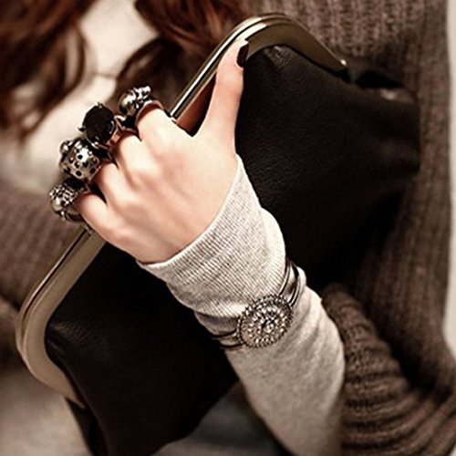 Missy K Skull Ring Clutch Purse is made of faux leather with 4 different rings beside the closure. This cool little purse is suitable for many occasions such as evening party, night club, ball, dinner party, wedding and even business meeting. Comes with a strap of 47 inches long, you can easily clutch the purse throught the rings or carry it as a dainty shoulder bag. The soft and matte faux leather yields a great comfortable hand feel.