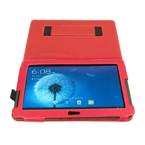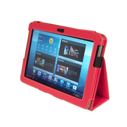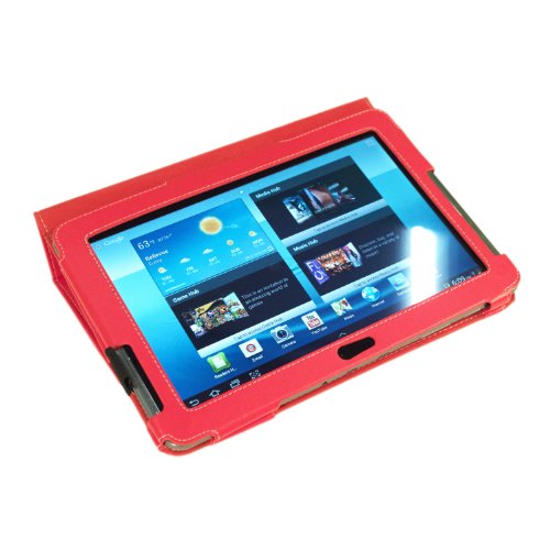 Kyasi Seattle Classic 10.1-inch Folio Case Cover Stand in Premium PU Leather for Samsung Galaxy Tab 2, Rad Red