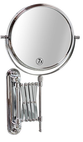 DecoBros 8-Inch Two-Sided Extension Wall Mount Mirror with 7x Magnification, 13.5-Inch Extension, Chrome