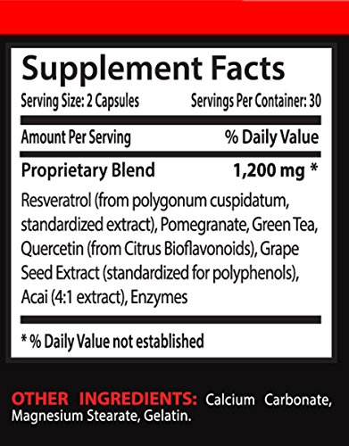 -. Title : Resveratrol with Grape Seed Extract - Premium Red Wine Extract 1200 - Maximum Strength Super Blend (1 Bottle 60 Capsules)