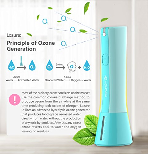 Lozure Ozone Water Sanitizer Spray Replaces Chemical Disinfectants and Deodorizers - Kills 99% of Bacteria, Viruses, Fungi in Kitchen, Bath, and More, Portable for Travel, 2 Year Warranty – Blue