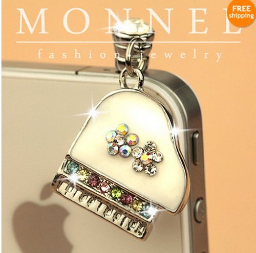 ip162-E Cute White Piano Music Cell Phone 3.5mm Ear Cap Anti Dust Plug Charm