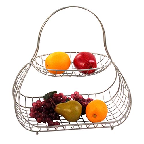 This 2-tier, sturdy basket is designed to conveniently hold and display your produce, bread, towels and more. This product is made of wrought iron. Perfect for kitchen or Bath.