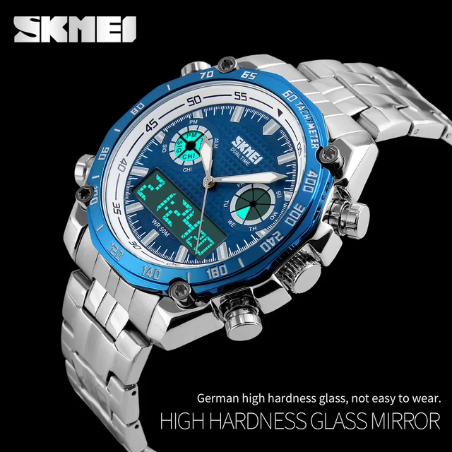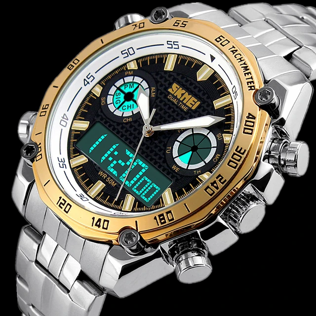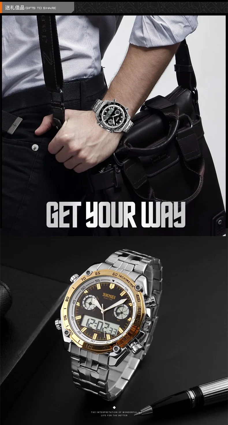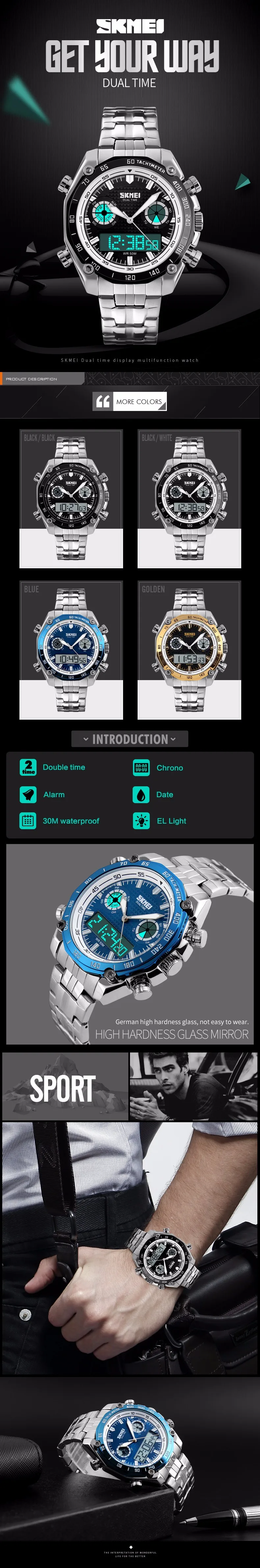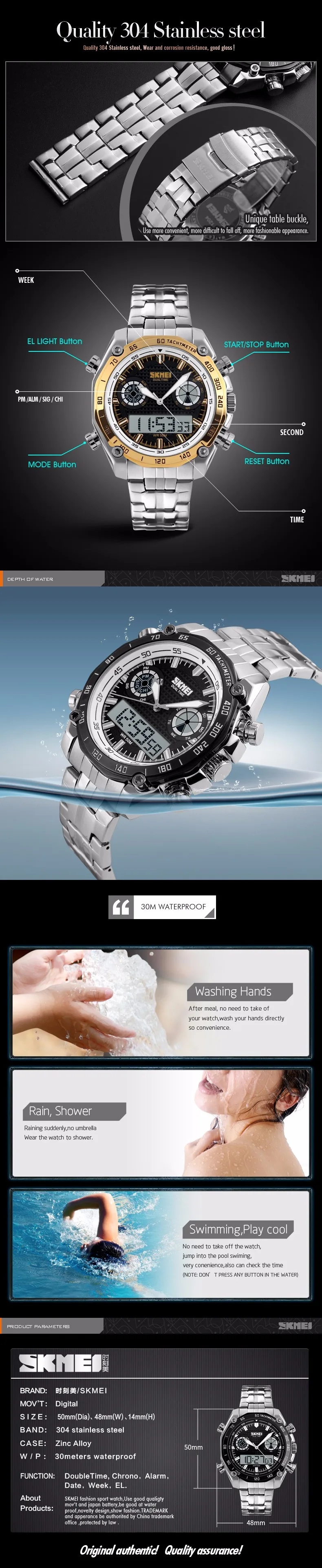 | [해외] 2016 브랜드 SKMEI 남성 스포츠 시계 전체 스테인레스 스틸 방수 남성 석영 디지털 듀얼 디스플레이 손목 시계 Relogio Masculino |