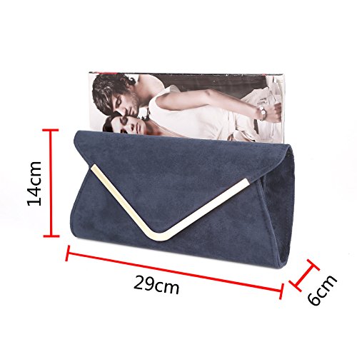 Fraulein3°8 Lady Faux Suede Bridal Clutch Evening Bag Prom Wedding Shoulder Handbag Purse