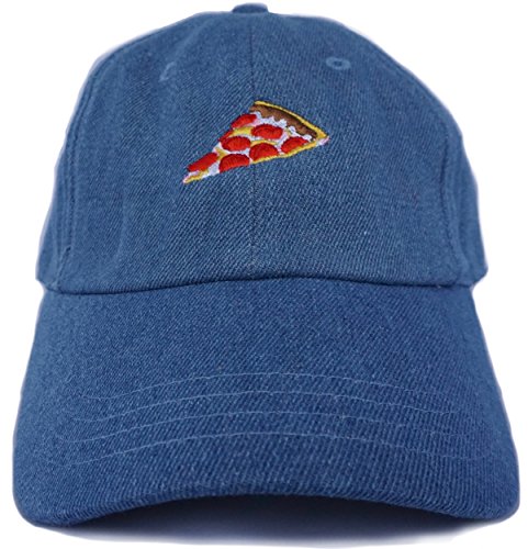 -. Feature : Kids Sized: Our children's "dad hats" are adjustable between 48-51cm. Generally, they fit small children between 1-5 years old. / Embroidered Graphic: High quality embroidered pizza graphic / Materials: Denim, 100% cotton twill, metal buckle strap back / Fit: Low profile, loose material, made to fit directly to the contour of your child's head.