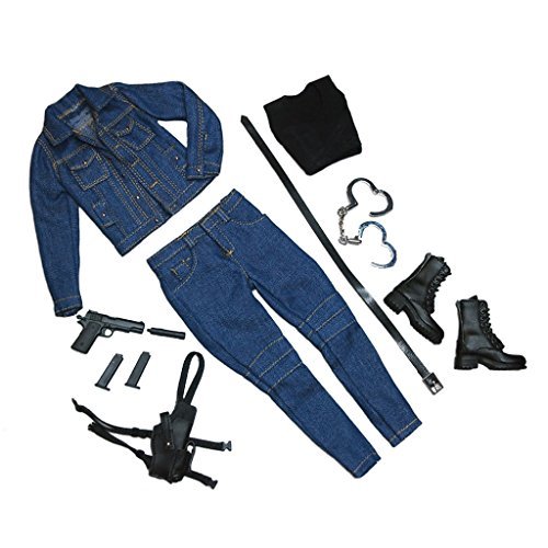 -. Feature : 並行輸入品 / 1 / 6スケールKumik女性のボディのおもちゃのKILLER女性デニムコスチュームセット / フェイクレザーを使用するデザインジーンズジャケットパンツウエストベルト / ブラックミリタリーlow-heeledレースアップコンバットブーツブーツ / サイズ1 / 6スケール12インチフィギュアモデルをフィット