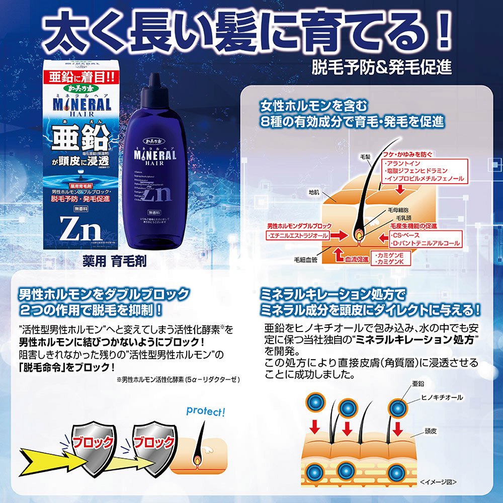 薄毛の髪は亜鉛不足。髪の成長に必須のミネラル「亜鉛」を浸透処方した育毛剤。