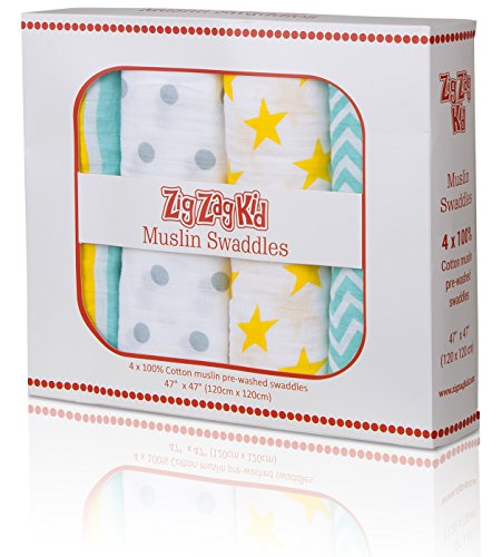 -. Feature : ✔ 4 IN A PACK & THE PERFECT BABY BLANKETS TO SWADDLE YOUR BABY TO SLEEP - Bundling Your Baby in our Muslin Swaddle Blanket will Soothe Your Baby and Can Add One to Two Hours to Their Night Time Sleep. / ✔ PREMIUM 100% COTTON MUSLIN SWADDLE BLANKETS, AMAZING QUALITY - Our Receiving Blankets are Our Own Exclusive Styles, Come in Vibrant Colors And Are the Perfect Swaddle Blankets For the Modern Mom. They Make A Great Baby Shower Gift As They are Unisex Colors and Designs - Suitable for Both Girls and Boys. Zig Zag Kid's Swaddling Blankets Come Four in a Box / ✔ GENEROUS SIZE LARGE MUSLIN SWADDLE BLANKETS 47" X 47" - Zig Zag Kid's Baby Swaddles are the Perfect Size To Ensure You Can Continue To Swaddle as Your Baby Grows. We Use Premium Quality 100% Lightweight Cotton Muslin Which Won't Overheat Your Baby. / ✔ VERSATILE - As Well as Using as a Baby Swaddle Blanket, They Are Perfect For an Impromptu Play Mat, Burp Cloth, Change Table Mat, Nursing Cover And Stroller Shade Cloth. Your Swaddles Will Go Everywhere With You And Take Up Barely Any Room In Your Diaper Bag. / ✔ NOT SURE? DOESN'T MATTER! WE WILL GIVE 100% OF YOUR MONEY BACK IF YOU ARE NOT COMPLETELY SATISFIED - We Love Our Customers and Stand By Our Products. If For Any Reason You Have Concerns about the Quality of Your Baby Blankets, Send them Back for a No Questions asked Refund. BUY NOW - No Risk!