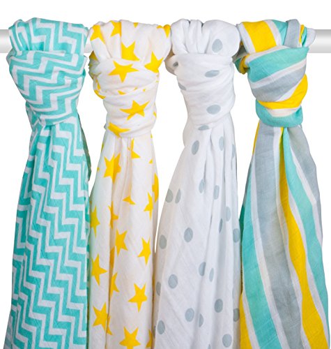 -. Title : Zig Zag Kid Premium 4 Pack Muslin Swaddle Blankets - 47x47 Large Soft 100% Cotton Baby Blankets For Boys and Girls