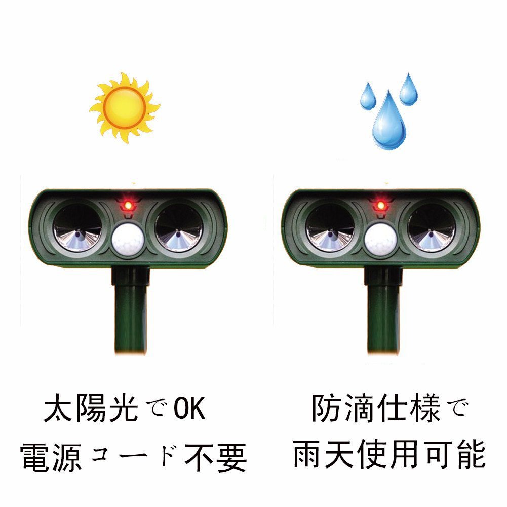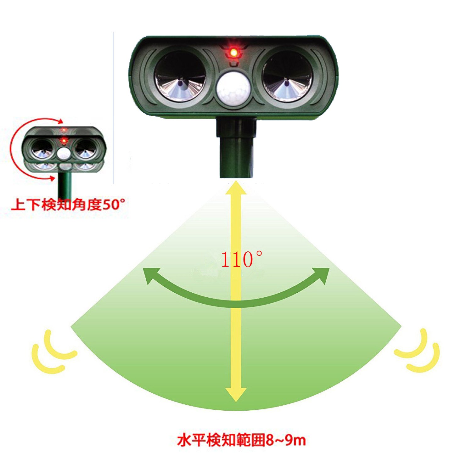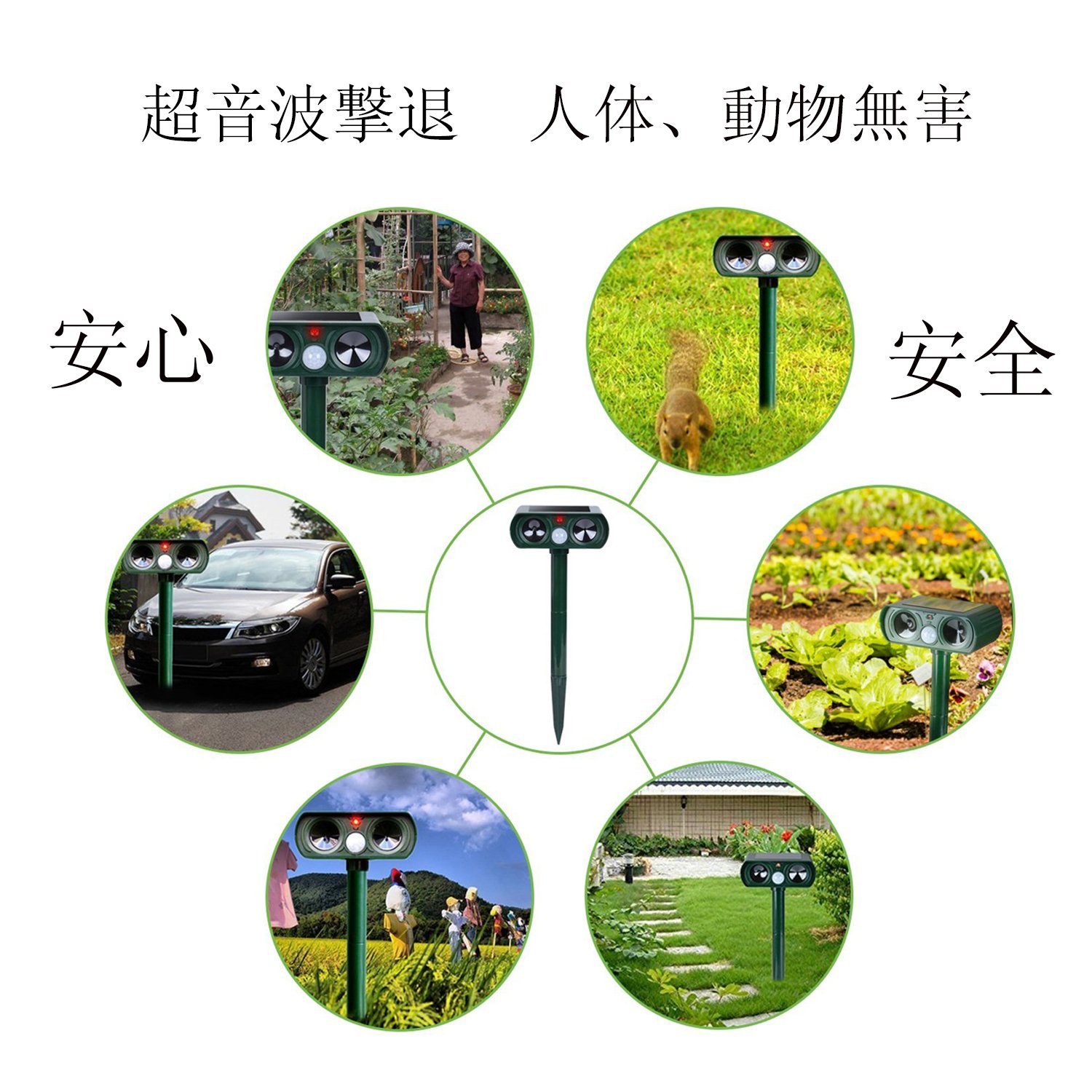Product is equipped with transformation function and lamp intense flash function, intense flash cycles once every 3-5 seconds and applies to more repellent animals.