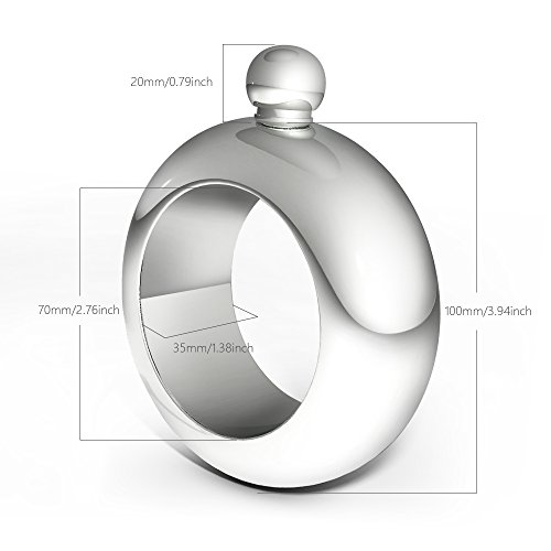 -. Feature : High Quality--Made of durable food grade 304 stainless steel, so will not rust,don't leak at all, you can put whiskey, liquor, juice or other drinks in it. / Fashion & Beautiful--The perfect combination of bracelet and flask, coolest jewelry for festivals, tailgates, concerts, parties and picnics / Capacity and Size--It can hold 3.5oz of your favorite non-acidic beverage.The bracelet has an inner diameter of 2.76 in and an outer diameter of 3.94 in, weight: 6 ounces. / Best Gift--This is the perfect gift item for festivals, birthdays, weddings, parties and picnics. This bracelet flask is an unexpected surprise for your family and friends,or just for yourself, it will make your life full of passion and fun / Risk free purchase--The bracelet flask that you purchase will be automatically enrolled in our lifetime replacement guarantee program. If anything goes wrong with your light strip, we will send you a replacement absolutely free, no return required