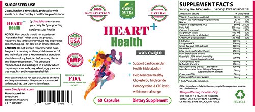 -. Feature : LIMITED TIME PROMOTIONAL OFFER ➤ New & Improved Herbal Supplement For Heart and Cardiovascular Health / HEARTH HEALTH PLUS WITH CoQ10 ➤ Help Supports Healthy Heart And Cardiovascular System, Maintain Normal Blood Pressure, increase energy production in cells, promote strong heart muscle, support healthy brain function, aid in antioxidant and digestive health increase metabolism, and support immune system. / VEGE TABLET - NATURAL- NON-GMO & GLUTEN FREE ➤ No dairy, No Hormones, No Antibiotics, No Preservatives, No artificial ingredients/flavors. The most pure, natural and healthy way to feel better and improve your heart health. / IMPROVE YOUR CARDIOVASCULAR HEALTH WITH KEY INGREDIENTS ➤ Include CoQ10, Resveratrol, Hawthorne Berry, Policosanol, ALA, Gugulipid, Betaine, Selenium and Many More / MADE IN THE U.S.A.➤ In a CMG-Certified, NSF-Certified and FDA-Approved facility. This product is GMP-certified and 3rd Party Tested to Assure the Highest Quality and Purity. Buy With Confidence!
