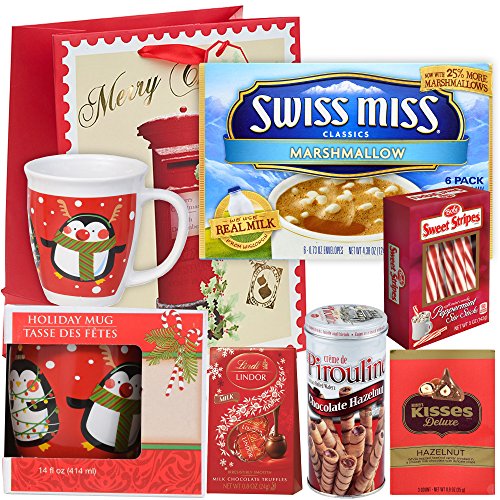 -. Title : Holiday Gift Set | 14 fl Mug, 6 Pack SwissMiss Marshmallow Hot Cocoa, Bobs Peppermint Candy Sticks, Hershey's Kisses Hazelnut, Lindt Lindor Milk Chocolate Truffles & Pirouline Wafers