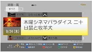 でか文字機能 番組表や録画一覧で、「緑」ボタンを押すと、文字サイズを約2倍に拡大して表示。小型テレビを使用している場合や、離れた場所で操作する場合に便利な機能。 |