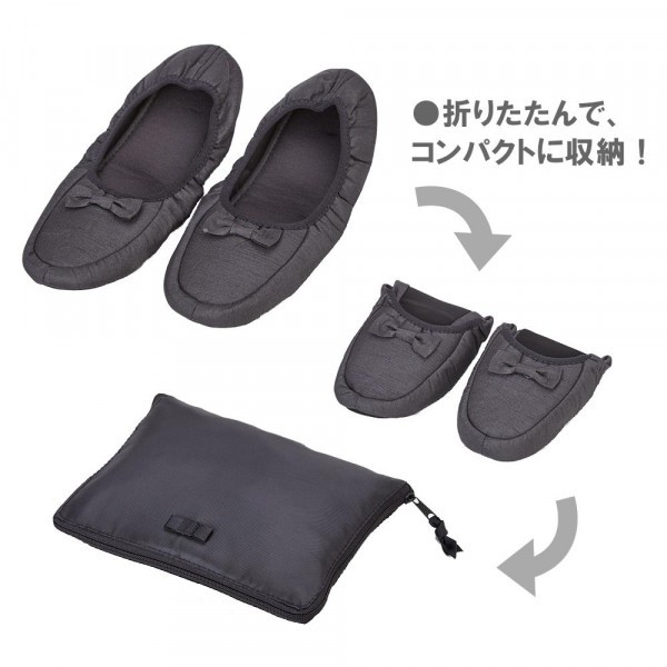 | 収納袋付きで持ち運びラクラク♪旅行先や卒入学式にピッタリです。履き口はゴム入りなので、脱げにくく、足にしっかりフィットします。上品なサテン生地にワンポイントリボンで使いやすいデザインです。 |