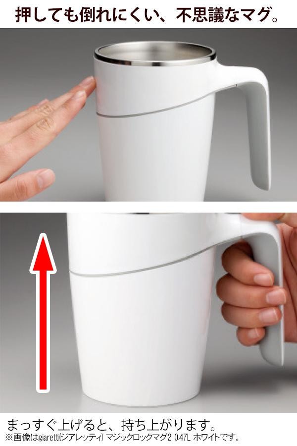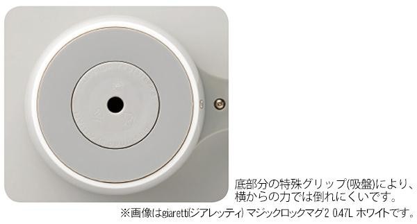 飲みながら作業したい時に便利な押しても倒れにくいマグです。底部分の特殊グリップ(吸盤)により、横からの力では倒れにくくなっています。 |