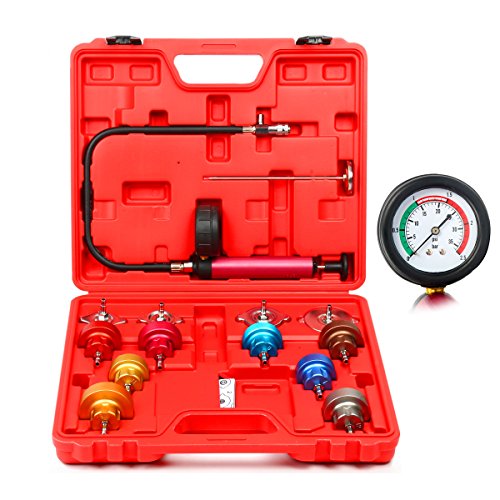 8milelake 14pc Auto Cooling System Radiator Color Cap Pressure Tester Kit Aluminum Adapters w/ Case
