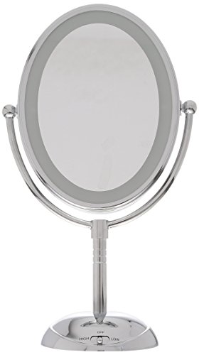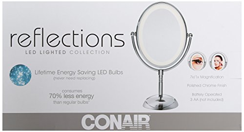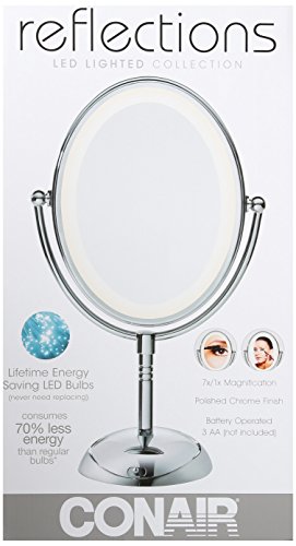 Conair Double-Sided Lighted Makeup Mirror - Lighted Vanity Makeup Mirror with LED Lights; 1x/7x magnification; Polished Chrome Finish