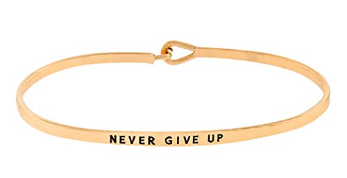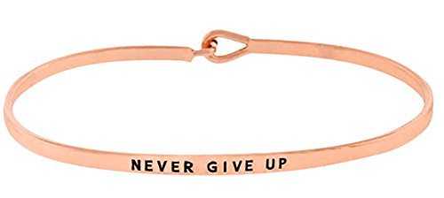 Bracelet is engraved with "Never Give Up"