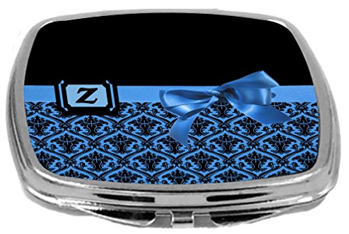 Rikki Knight Letter-Z Monogram Damask Bow Design Compact Mirror, Blue, 2 Ounce