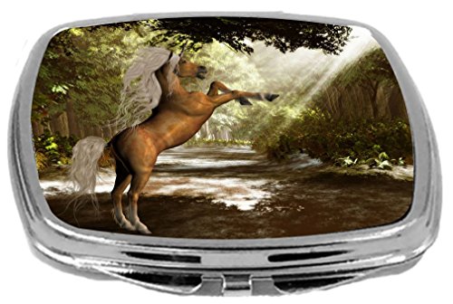 Rikki Knight Compact Mirror, Brown Unicorn Sunrays in Forest, 3 Ounce