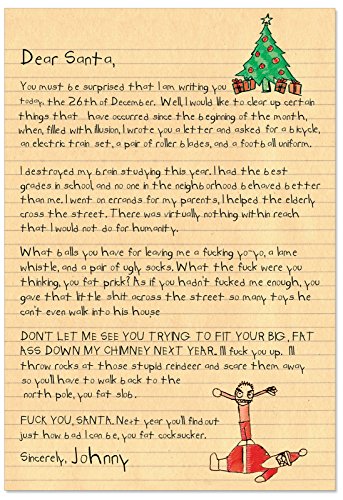 B1087K Box Set of 12 Dear Santa Hilarious Blank Christmas Paper Cards with Envelopes