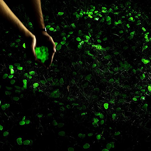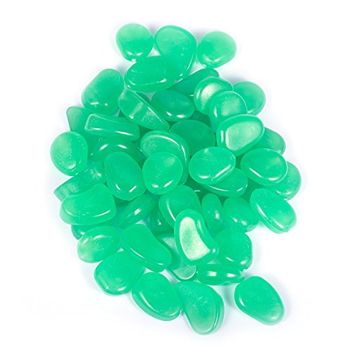 Interomgl 100pcs Glow Solar in the Dark Fairy Garden Pebble Paving Lawn Decorate Drive/Walkway Luminous Stone DIY Vases Gravel for Fish Tank Coral Aquarium Landscaping Window Outside Yard Grass Green