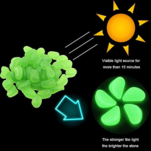 Made from polystyrene with fluorescent powder in green, 100 pieces man-made resin stone will give you a surprise.