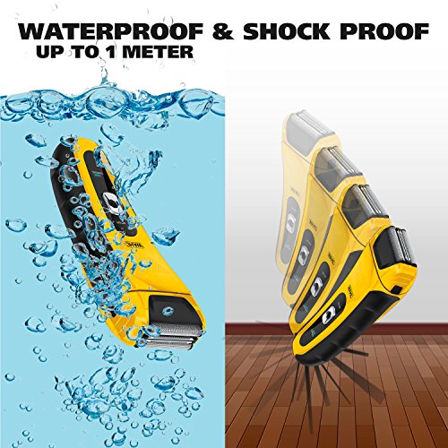 - High impact, shock resistant, dual foil rechargeable lithium ion waterproof shaver with popup precision ground trimmer best for shaving, trimming and wet or dry shave. Long lasting lithium ion technology go months between charges with regular use. Kit includes shaver, charger, storage travel zipper pouch, and styling guide