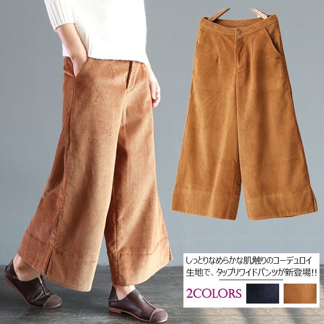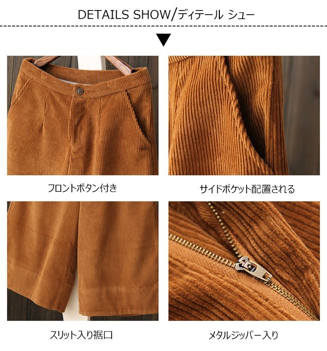 | 商品名 | ガウチョパンツ レディース ロングパンツ ワイドパンツ コーデュロイパンツ スカンツ スカーチョ バックウエストゴム レトロ調 ボトムス |