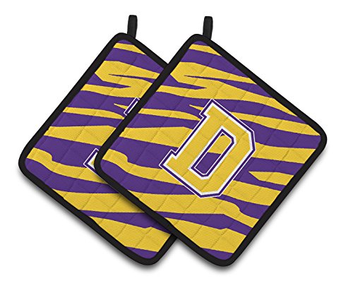 Caroline's Treasures Letter D Monogram - Tiger Stripe - Purple Gold Pair of Pot Holders CJ1022-DPTHD, 7.5HX7.5W, Multicolor