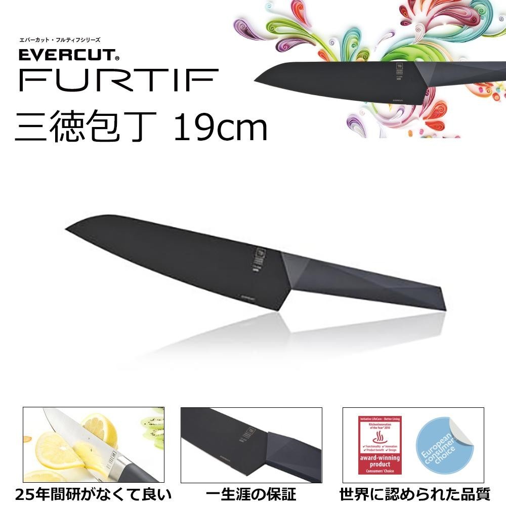 日本でも、最も馴染みのある包丁の形。肉・魚・野菜の調理に使用できることから「三徳」と呼ばれています。先が尖っているので幅広い用途があり、ご家庭で一番多く使用されています。従来の包丁の300倍の耐久性を持つ、25年間研がなくてよい包丁。鋭い切れ味が長続きし、面倒な「研ぎ」から解放されます。そして、一つ一つに個別のシリアルナンバーが記載されており、すべての商品に一生涯の保証が与えられています。 |