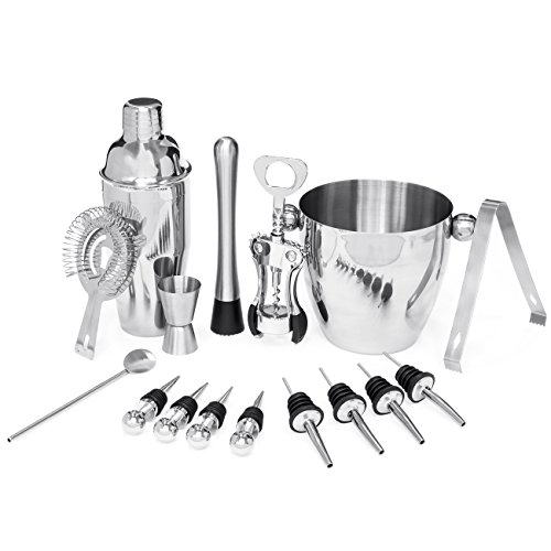 -. Title : Best Choice Products 16-Piece Stainless Steel Bartender Mixology Set w/ Ice Bucket, Cocktail Shaker, Strainer, Corkscrew