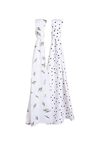 Bebe au Lait Oh So Soft Muslin Swaddle Blanket Set, Saguaro and Dottie