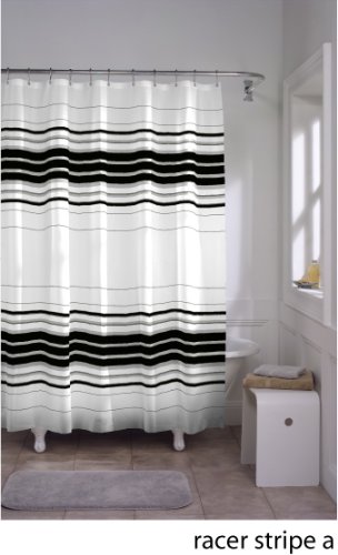 Maytex Racer Stripe Fabric Shower Curtain, Black