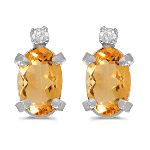 Genuine 6x4 mm citrine garnet gemstone earrings topped with a bright diamond set in sterling silver. The perfect holiday or birthday gift.