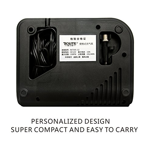 Portable Tire Inflator, Udyr Mini 150 PSI 12V DC Auto Air Compressor Pump for Cars, Bicycles, Basketballs and Inflatable Objects, Black