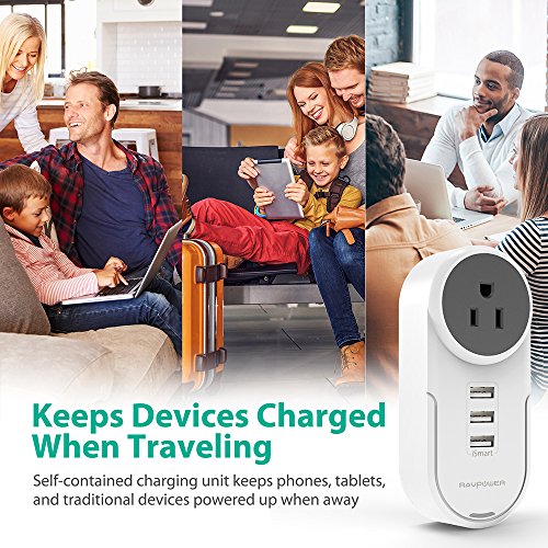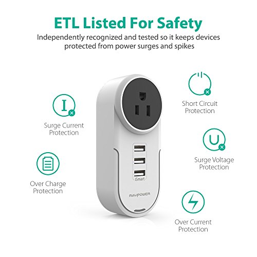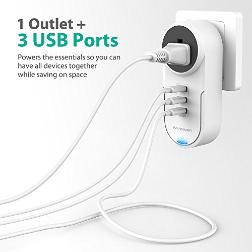 Studio : RAVPower Publisher : RAVPower Binding : Tools Home Improvement Product Description Plug in and keep devices secure with the RAVPower RP-PC003 Surge Protector. Coming with one outlet and three USB ports, power the essentials including traditional AC appliances and modern USB-powered devices. With everything in one compact unit, save on space instead of using less devices. 180deg; Rotatable AC Pins When other bulky devices take up valuable AC spot space, simply swivel the adapterrsquo;s AC pins into one of three positions and plug in. Itrsquo;s not just greater convenience, the rotatable pins mean you can find room to connect when other devices cannot. Upgraded iSmart 2.0 Automatically detects and adjusts the charging current to obtain the fastest charge for your device. As the upgraded version of iSmart, it also corrects irregular charging behavior and balances the current output when multiple devices charge. ETL Listed FCC Certified Safety comes first, which is why this wall charger has been ETL listed and FCC certified. These safety recognitions ensure that the charger keeps devices protected from freak power surges and random electrical spikes. Travel Friendly Wall Charger No longer will you need to pay extra to use a hotelrsquo;s AC adapter with your own petite, travel friendly one available wherever you go. With an AC input and three USB ports built into one compact device, have enough power to holiday in comfort. Whatrsquo;s In The Box: 1 x RAVPower Surge Protector (Model: RP-PC003) 1 x User Guide 0