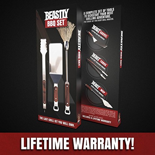 A 100% MONEY-BACK GUARANTEE & LIFETIME WARRANTY. This eliminates all risk, assures your complete satisfaction, and allows you to buy with confidence. If you're not happy, simply return the 3 piece Beastly BBQ Set. No questions asked!