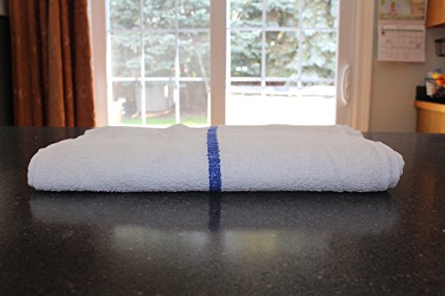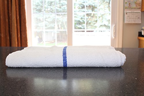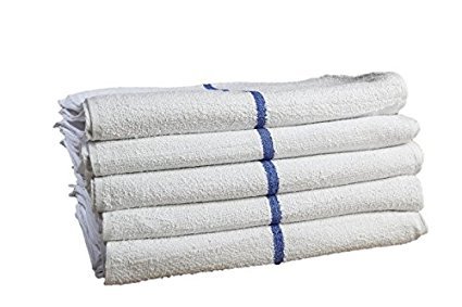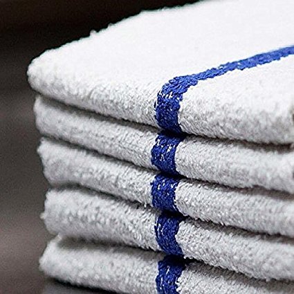 Bar Mop Cleaning Towels (12 Pack, 16 x 19 Inch) – Cotton Terry, White with Blue Stripe